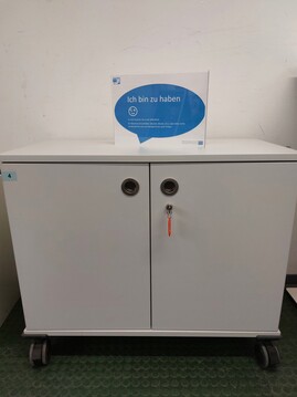 Darin können entliehene Medien und eigene Materialien verwahrt werden.