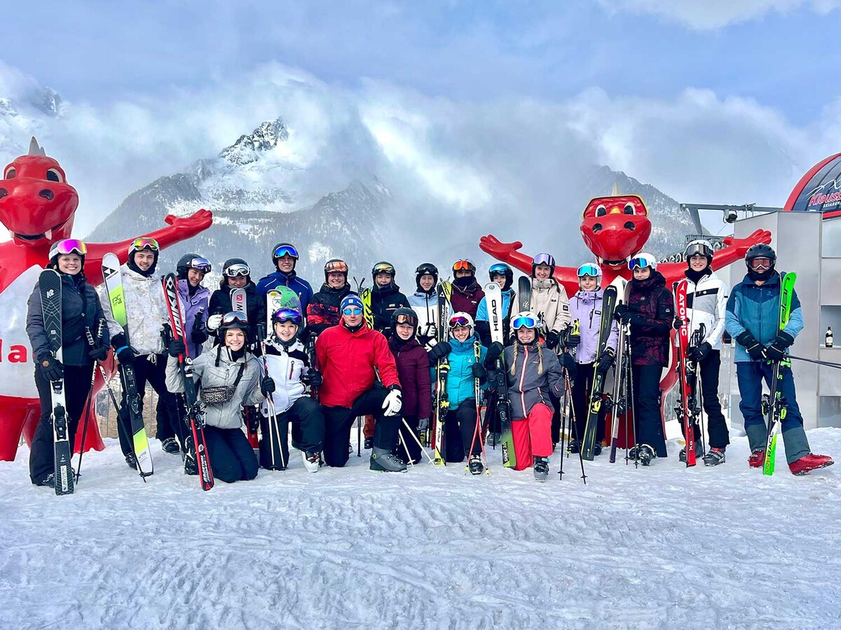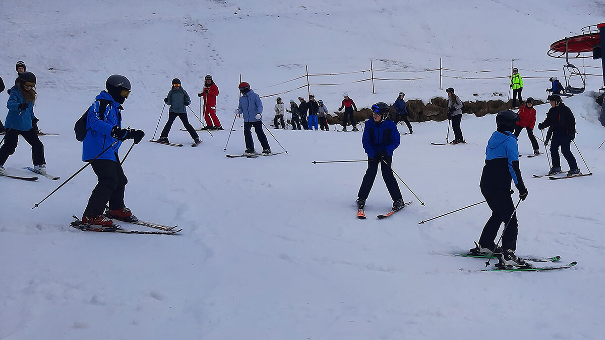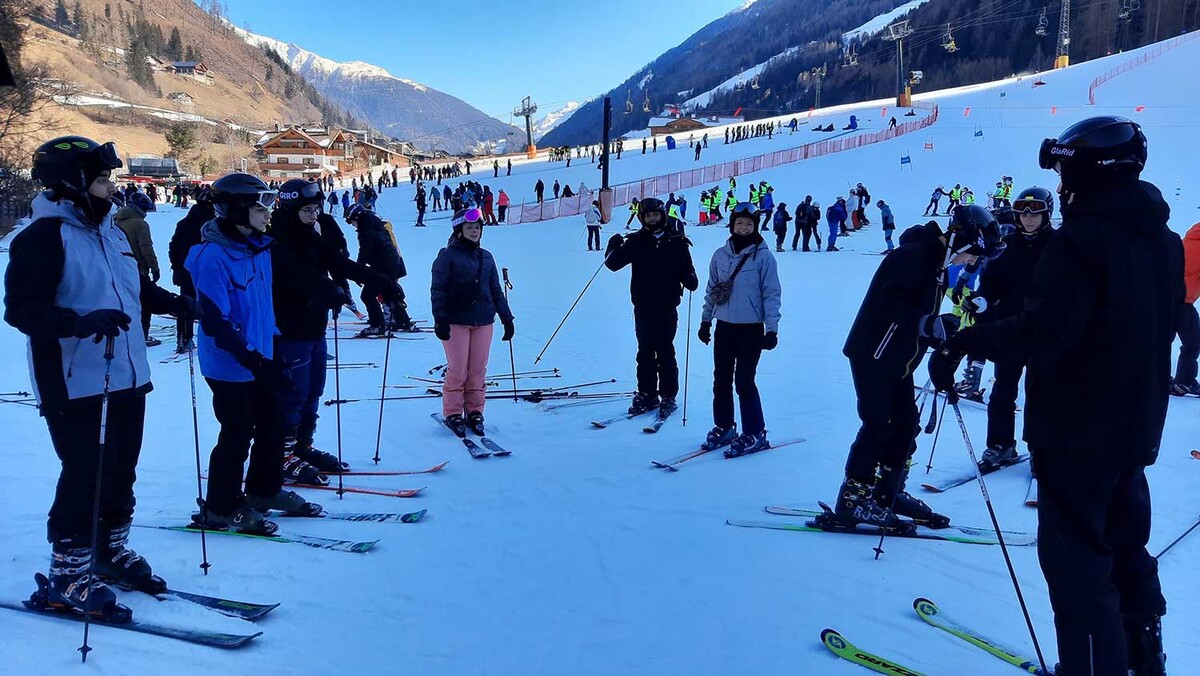 Praxis-Theorie-Verknüpfung: Studierende führen Schülerinnen und Schülern in die Sportart Ski Alpin ein.