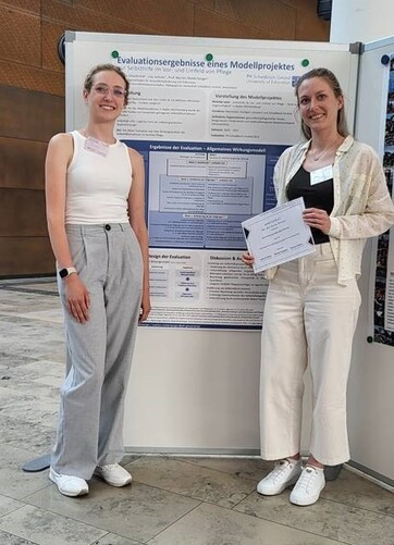 Mit dem Poster haben sie die Ergebnisse der Evaluation eines Modellprojektes zur Selbsthilfe im Kontext Pflege präsentiert. Dieses Projekt haben sie unter der Leitung von Prof. Dr. Marlen Niederberger (Abt. Forschungsmethoden in der Gesundheitsförderung und Prävention) von 2021 bis 2023 durchgeführt. Mit einem multimethodischen Forschungsansatz untersuchten sie die Wirkungen von Selbsthilfearrangements im Vor- und Umfeld von Pflege in vier Modellstandorten in Baden-Württemberg.