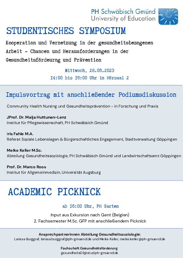 Studentischen Symposium und akademischen Picknick zum Thema „Vernetzung und Kooperation in der gesundheitsbezogenen Arbeit".