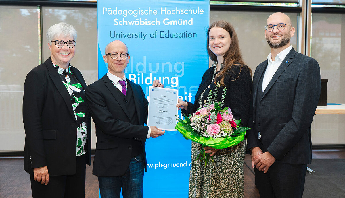 Iryna Leshchyk hat von der PH Schwäbisch Gmünd den mit 1.000 Euro dotierten DAAD-Preis für hervorragende Leistungen internationaler Studierender an den deutschen Hochschulen verliehen bekommen.