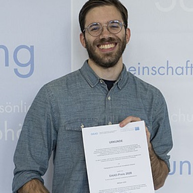 Sehr gute Studienleistungen und überdurchschnittliches Engagement: Das zeichnet die Preisträger und Preisträgerinnen des „DAAD-Preises für hervorragende Leistungen ausländischer Studierender“ aus. Der Deutsche Akademische Austauschdienst (DAAD) stellt den Hochschulen den mit 1000 Euro dotierten Preis jährlich zur Verfügung, um auf die Bereicherung durch internationale Studierende für die deutsche Hochschullandschaft aufmerksam zu machen. Die Pädagogische Hochschule (PH) Schwäbisch Gmünd verlieh den Preis am 13.11.20 an William Levi, der im dritten Semester im Masterstudiengang „Germanistik und Interkulturalität / Multilingualität“ studiert.