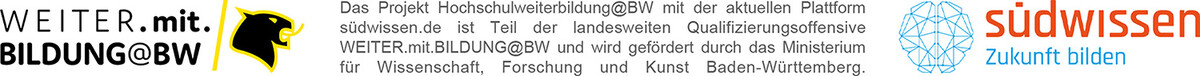 - Die wissenschaftliche Weiterbildung wird sichtbarer. Zentral ist die Plattform www.suedwissen.de auf der sämtliche Weiterbildungsangebote der Hochschulen zu finden und zu buchen sind.