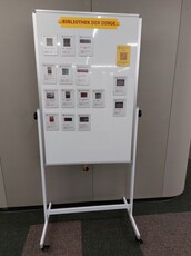 In der Bibliothek haben wir eine Feedback-Box aufgestellt: am Arbeitsplatz beim Notausgang/Sporthalle.